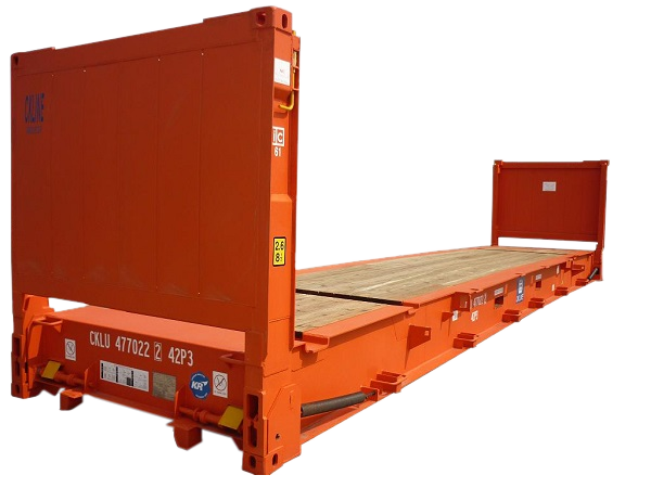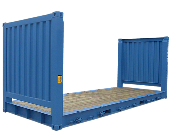 Heavy lift, over-height, and/or over-width cargo are best stowed on flat racks. End frames on flat racks can be collapsed. Lashing rings are accessible on the bottom side rails, corner posts, and floor to secure freight with straps or chains.