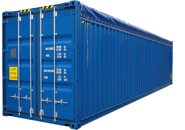 An open top has no permanent roof; instead, it has a removable, waterproof tarpaulin that can be secured with ropes. The metal beam above the entrance can be disassembled and opened to the right or left. The inside base of the container has lashing rings that are used to secure and prevent cargo from shifting during transit. This container is appropriate for lengthy and/or over-height cargo.